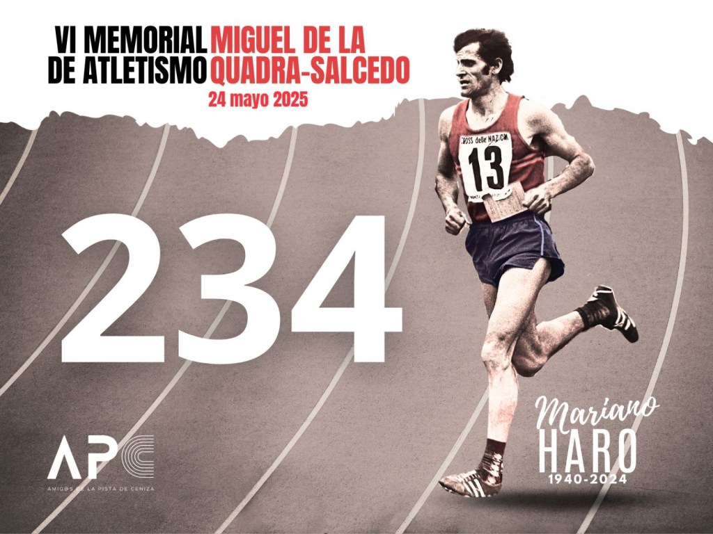 Dentro de los distintos homenajes que se rendirán a Mariano Haro durante el VI Memorial de Atletismo Miguel de la Quadra-Salcedo (24 de mayo), el corredor palentino, fallecido el pasado mes de julio de 2024, será el protagonista del dorsal conmemorativo que lucirán todos los inscritos en esta edición del festival atlético que se celebra en la casi centenaria pista de ceniza de la Universidad Complutense de Madrid y que, uno año más, está abierto a todo tipo de participantes, ya sean corredores populares, atletas, atletas máster o niños.